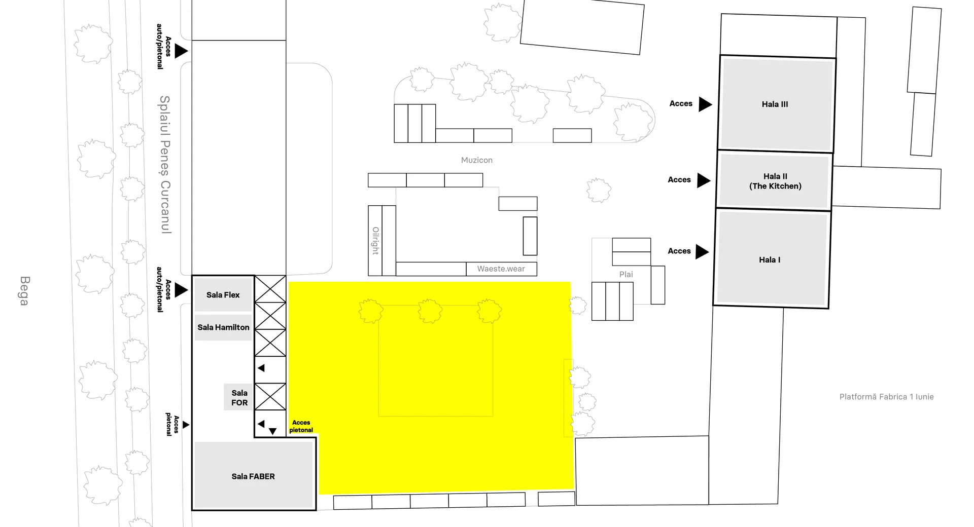 Curtea reprezintă o platformă exterioară dedicată găzduirii evenimentelor în aer liber. Spațiul a fost proiectat pentru a asigura o versatilitate operațională extinsă, facilitând organizarea unei game variate de activități publice și private, incluzând concerte, târguri tematice, sesiuni de team building și festivaluri cu un profil definit. Prin designul său neutru și funcțional, curtea oferă un cadru adaptabil la cerințele logistice ale fiecărui proiect.