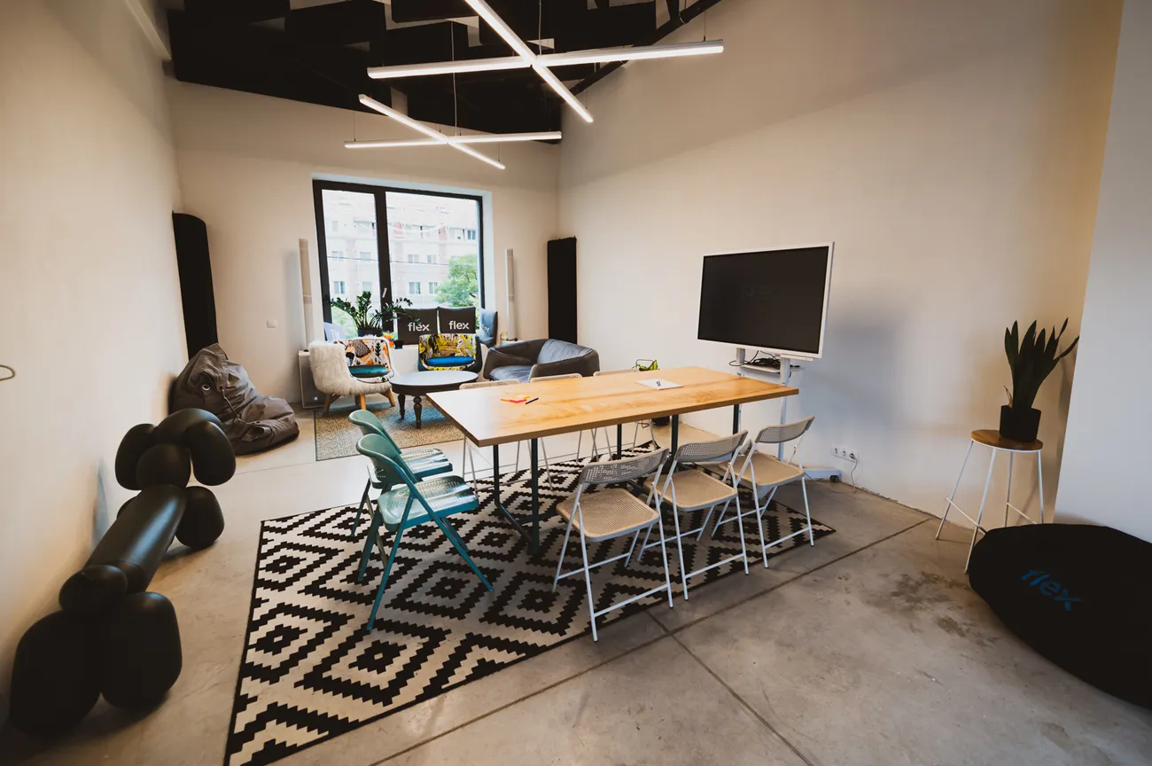 Sala de ședințe Flex Ideation Room este un spațiu care face parte din proiectul AMBASADA și are rolul de a acționa ca și locație-resursă pentru muncă, ședințe și co-creare. Aici au avut loc training-uri și sesiuni de pregătire pe diferite teme de interes pentru organizații și mediul non-profit, antreprenoriat social și creativ, sesiuni de echipă de maxim 20 de locuri și cursuri specializate oferite de specialiști în diferite domenii. În egală măsură spațiul a servit pentru întâlniri informale după lucru, bucurându-se de o extensie exterioară, în aer liber.