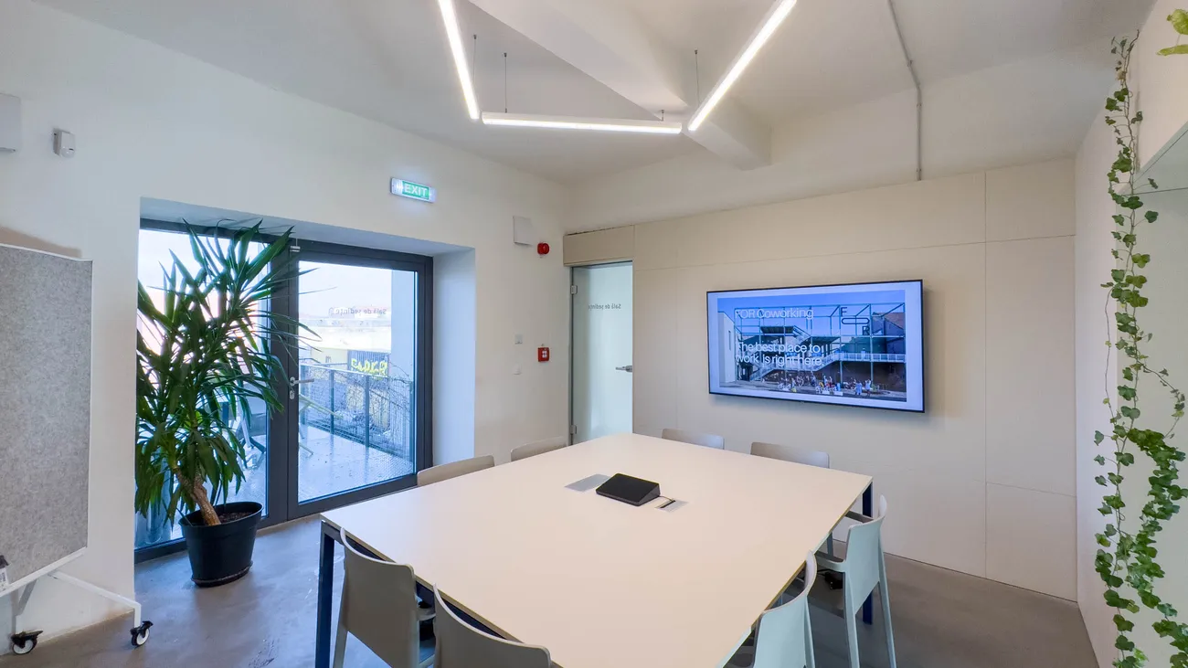 Sala FOR team este o imersiune în spațiul FOR coworking, cu ferestre mari pe trei laturi și vedere către Bega - aici faci ședința pe care participanții o vor ține minte.